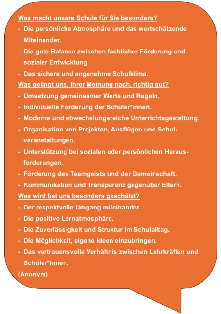 Wir freuen uns sehr über die positiven Kommentare unserer Eltern zur Arbeit an unserer Mittelschule.